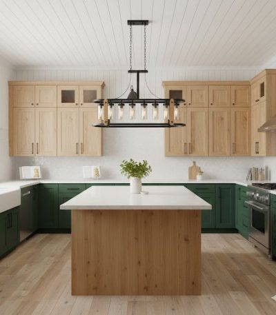 لوستر خطی چوب و فلز هشت شعله مدل BAM9048